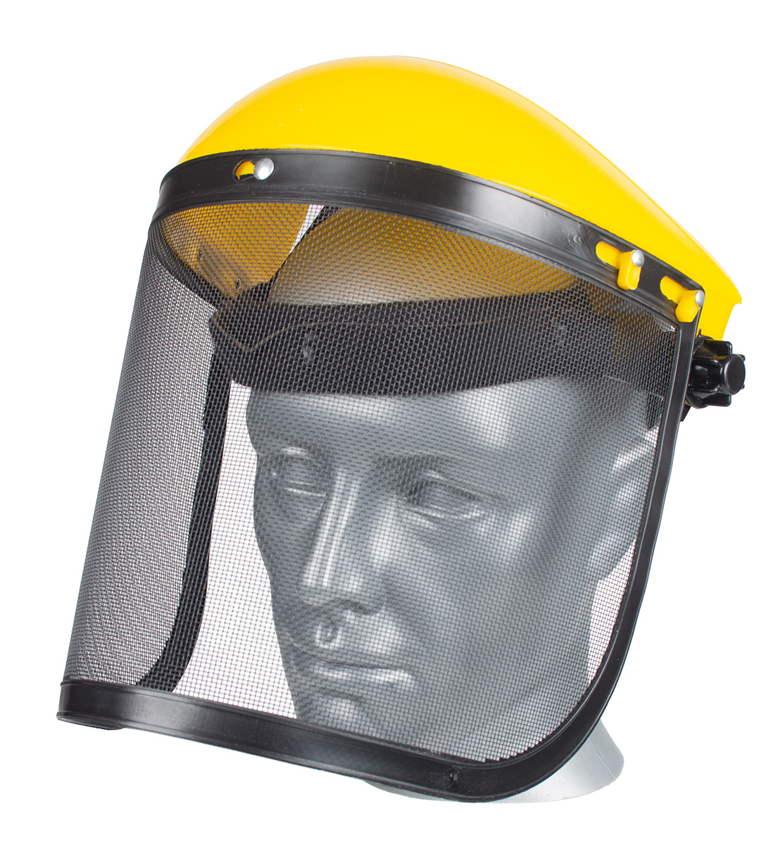 -Stalowa siatka ochronna – wytrzymała mechanicznie, odporna na uderzenia większych cząstek; zapewnia bardzo dobrą cyrkulację powietrza i minimalizuje zaparowanie, co podnosi komfort pracy przy koszeniu, podkaszaniu czy cięciu gałęzi.