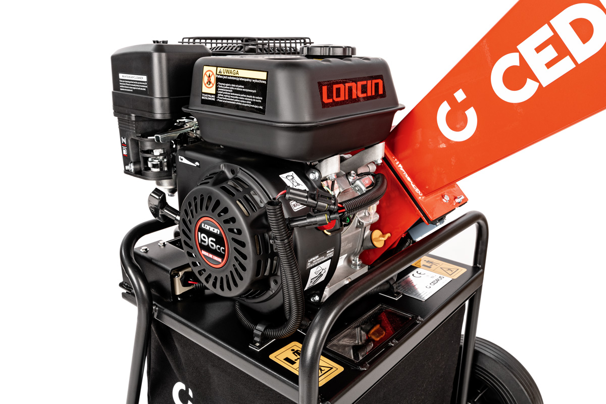 Loncin G200F, 2 noże robocze na bębnie, max. średnica gałęzi 50mm, waga 51kg, zbiornik 65l